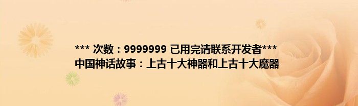 本文*** 次数:9999999 已用完请联系开发者*** 中国神话故事:上古十大神器和上古十大魔器到此分享完毕,希望对大家有所帮助。