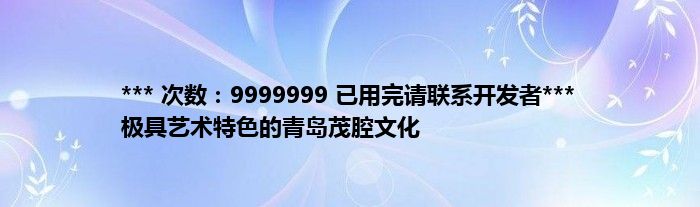 本文*** 次数:9999999 已用完请联系开发者*** 极具艺术特色的青岛茂腔文化到此分享完毕,希望对大家有所帮助。