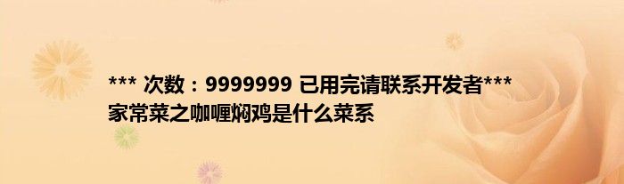本文*** 次数:9999999 已用完请联系开发者*** 家常菜之咖喱焖鸡是什么菜系到此分享完毕,希望对大家有所帮助。