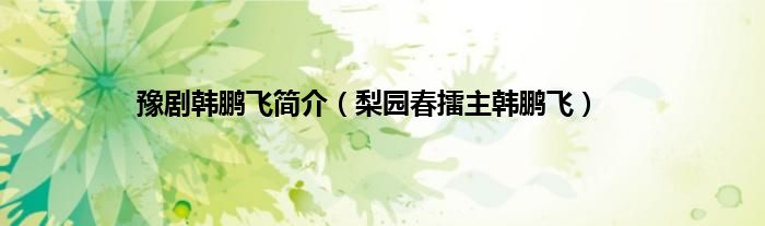 大家好,综合小编来为大家讲解下。豫剧韩鹏飞简介,梨园春擂主韩鹏飞这个很多人还不知道,现在让我们一起来看看吧!