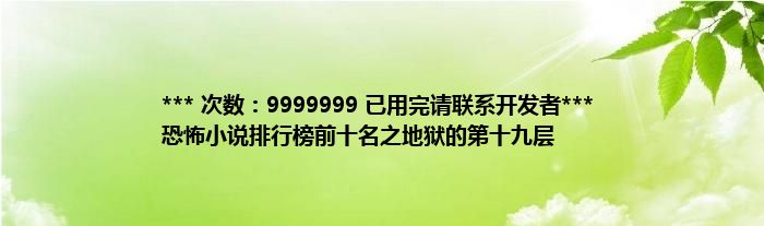 大家好,综合小编来为大家讲解下。*** 次数:9999999 已用完请联系开发者*** 恐怖小说排行榜前十名之地狱的第十九层这个很多人还不知道,现在让我们一起来看看吧!