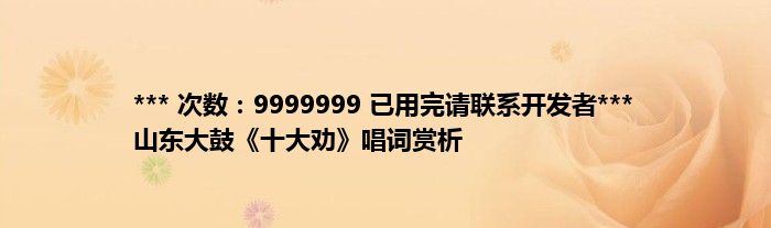 本文*** 次数:9999999 已用完请联系开发者*** 山东大鼓《十大劝》唱词赏析到此分享完毕,希望对大家有所帮助。