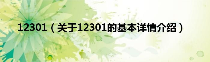 本文关于12301的基本详情介绍就讲解完毕,希望对大家有所帮助。