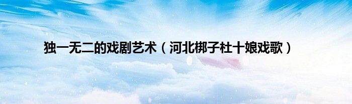 大家好,综合小编来为大家讲解下。独一无二的戏剧艺术,河北梆子杜十娘戏歌这个很多人还不知道,现在让我们一起来看看吧!