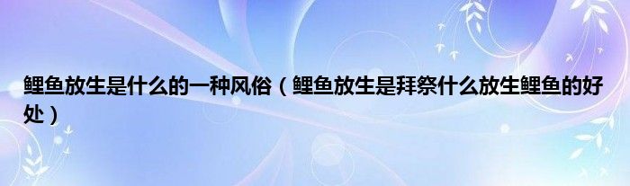 大家好,综合小编来为大家讲解下。鲤鱼放生是什么的一种风俗,鲤鱼放生是拜祭什么放生鲤鱼的好处这个很多人还不知道,现在让我们一起来看看吧!