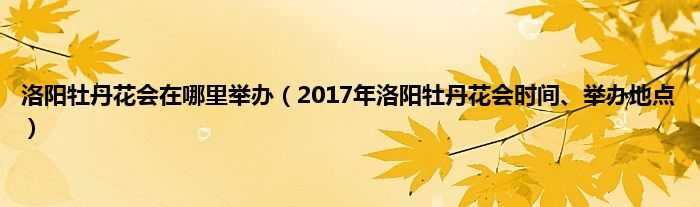 1、 2017年洛阳牡丹花会时间、举办地点: 2017年洛阳牡丹花会时间,参考2016年:2017年4月5日至5月5日,4月10日开幕仪式。