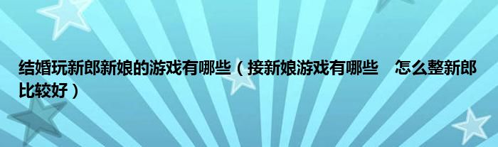 大家好,综合小编来为大家讲解下。结婚玩新郎新娘的游戏有哪些,接新娘游戏有哪些 怎么整新郎比较好这个很多人还不知道,现在让我们一起来看看吧!
