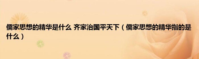 本文儒家思想的精华是什么 齐家治国平天下,儒家思想的精华指的是什么到此分享完毕,希望对大家有所帮助。