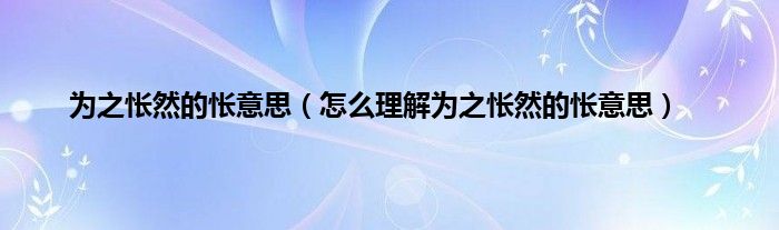 欢迎观看本篇文章,小升来为大家解答以上问题。为之怅然的怅意思,怎么理解为之怅然的怅意思很多人还不知道,现在让我们一起来看看吧!
