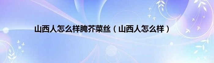 以上就是【山西人怎么样腌芥菜丝,山西人怎么样】相关内容。