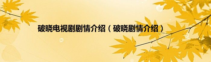 大家好,小问来为大家解答以上问题。破晓电视剧剧情介绍,破晓剧情介绍这个很多人还不知道,现在让我们一起来看看吧!