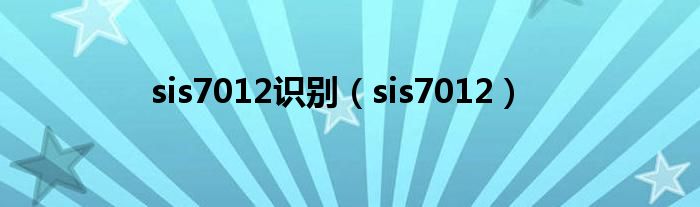 大家好,小问来为大家解答以上问题。sis7012识别,sis7012这个很多人还不知道,现在让我们一起来看看吧!