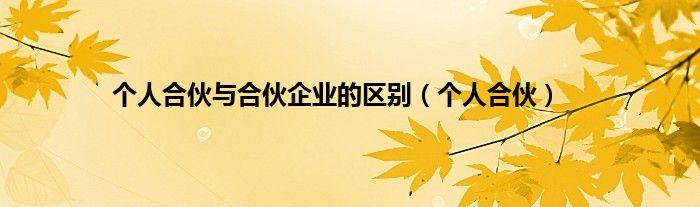 以上就是【个人合伙与合伙企业的区别,个人合伙】相关内容。