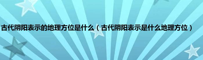 欢迎观看本篇文章,小升来为大家解答以上问题。古代阴阳表示的地理方位是什么,古代阴阳表示是什么地理方位很多人还不知道,现在让我们一起来看看吧!