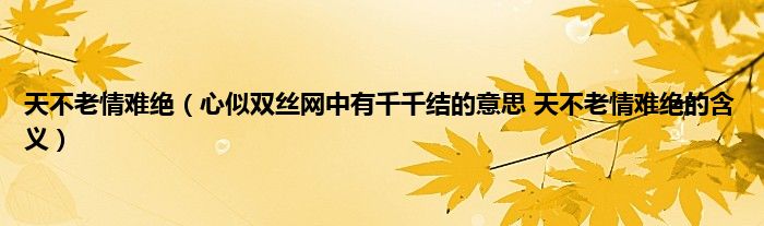 欢迎观看本篇文章,小升来为大家解答以上问题。天不老情难绝,心似双丝网中有千千结的意思 天不老情难绝的含义很多人还不知道,现在让我们一起来看看吧!