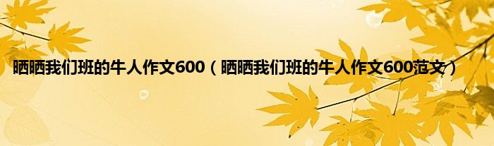 欢迎观看本篇文章,小升来为大家解答以上问题。晒晒我们班的牛人作文600,晒晒我们班的牛人作文600范文很多人还不知道,现在让我们一起来看看吧!