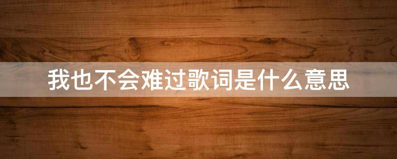 我也不会难过歌词的意思是我会很开心,不会感到难受。我也不会难过是歌曲《我很快乐》里的歌词,是刘惜君的成名曲,由祈合作词、作曲、编曲,收录于刘惜君2010年发行的首张音乐专辑《爱情花园》中。由于并非专辑主打歌却受到许多人的喜爱,之后作为单曲再次宣传。该歌曲获得了2010年度音乐先锋榜内地十大金曲。这首歌是对刘惜君的真实写照,表达的是她的坚强宣言,唱出的是坚强和她为音乐而苦苦坚持的心绪。直白而不失新意的歌词,优美的旋律,唱出的是坚强。
