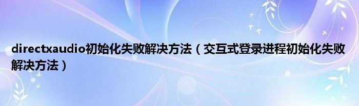 大家好,综合小编来为大家讲解下directxaudio初始化失败解决方法,交互式登录进程初始化失败解决方法这个很多人还不知道,现在让我们一起来看看吧!