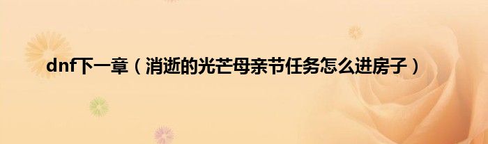 大家好,综合小编来为大家讲解下dnf下一章,消逝的光芒母亲节任务怎么进房子这个很多人还不知道,现在让我们一起来看看吧!