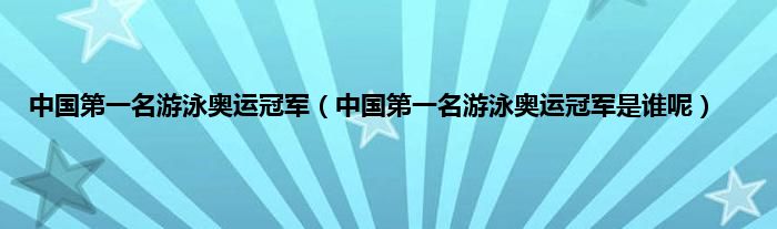 欢迎观看本篇文章,小升来为大家解答以上问题。中国第一名游泳奥运冠军,中国第一名游泳奥运冠军是谁呢很多人还不知道,现在让我们一起来看看吧!