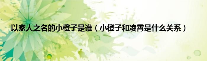 欢迎观看本篇文章,小升来为大家解答以上问题。以家人之名的小橙子是谁,小橙子和凌霄是什么关系很多人还不知道,现在让我们一起来看看吧!