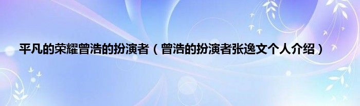 欢迎观看本篇文章,小升来为大家解答以上问题。平凡的荣耀曾浩的扮演者,曾浩的扮演者张逸文个人介绍很多人还不知道,现在让我们一起来看看吧!