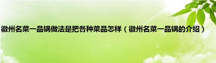 欢迎观看本篇文章,小升来为大家解答以上问题。徽州名菜一品锅做法是把各种菜品怎样,徽州名菜一品锅的介绍很多人还不知道,现在让我们一起来看看吧!