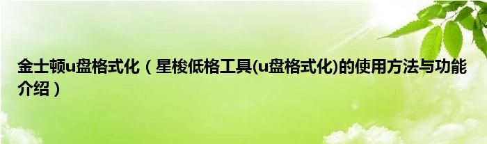 大家好,综合小编来为大家讲解下金士顿u盘格式化,星梭低格工具(u盘格式化)的使用方法与功能介绍这个很多人还不知道,现在让我们一起来看看吧!