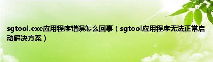 大家好,综合小编来为大家讲解下sgtool.exe应用程序错误怎么回事,sgtool应用程序无法正常启动解决方案这个很多人还不知道,现在让我们一起来看看吧!