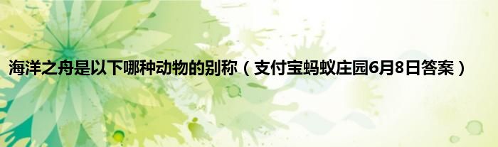 大家好,综合小编来为大家讲解下海洋之舟是以下哪种动物的别称,支付宝蚂蚁庄园6月8日答案这个很多人还不知道,现在让我们一起来看看吧!