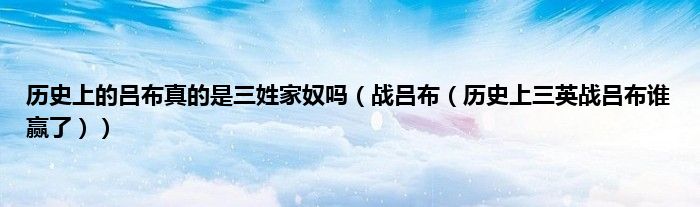 大家好,综合小编来为大家讲解下历史上的吕布真的是三姓家奴吗,战吕布,历史上三英战吕布谁赢了这个很多人还不知道,现在让我们一起来看看吧!
