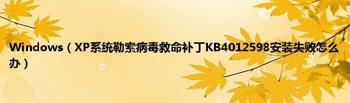 大家好,综合小编来为大家讲解下Windows,XP系统勒索病毒救命补丁KB4012598安装失败怎么办这个很多人还不知道,现在让我们一起来看看吧!
