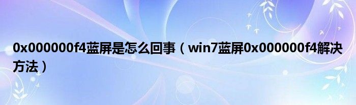 大家好,综合小编来为大家讲解下0x000000f4蓝屏是怎么回事,win7蓝屏0x000000f4解决方法这个很多人还不知道,现在让我们一起来看看吧!