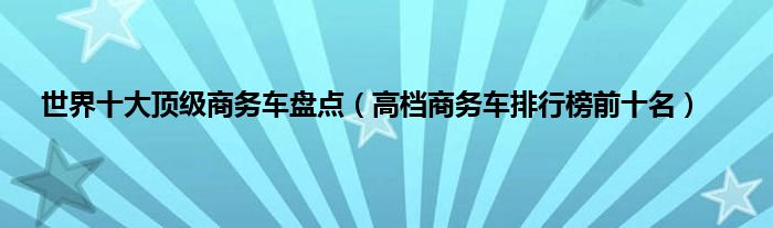 大家好,综合小编来为大家讲解下。世界十大顶级商务车盘点,高档商务车排行榜前十名这个很多人还不知道,现在让我们一起来看看吧!