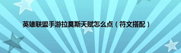 大家好,综合小编来为大家讲解下英雄联盟手游拉莫斯天赋怎么点,符文搭配这个很多人还不知道,现在让我们一起来看看吧!