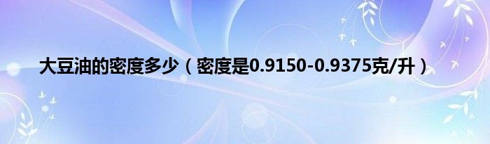 欢迎观看本篇文章,小升来为大家解答以上问题。大豆油的密度多少,密度是0.9150-0.9375克/升很多人还不知道,现在让我们一起来看看吧!
