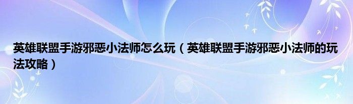 大家好,综合小编来为大家讲解下英雄联盟手游邪恶小法师怎么玩,英雄联盟手游邪恶小法师的玩法攻略这个很多人还不知道,现在让我们一起来看看吧!