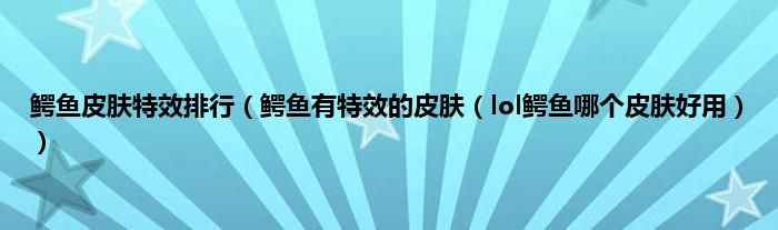 3、lol鳄鱼皮肤特效排行。