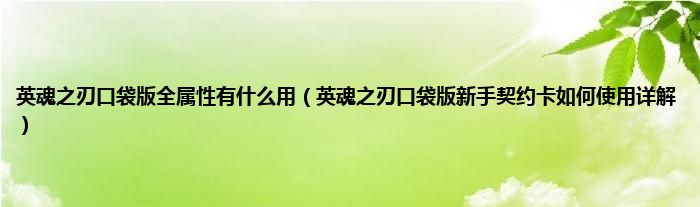 大家好,综合小编来为大家讲解下英魂之刃口袋版全属性有什么用,英魂之刃口袋版新手契约卡如何使用详解这个很多人还不知道,现在让我们一起来看看吧!