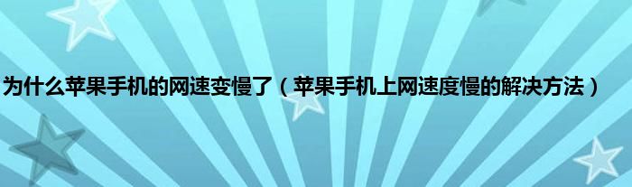 大家好,综合小编来为大家讲解下为什么苹果手机的网速变慢了,苹果手机上网速度慢的解决方法这个很多人还不知道,现在让我们一起来看看吧!