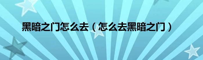 欢迎观看本篇文章,小升来为大家解答以上问题。黑暗之门怎么去,怎么去黑暗之门很多人还不知道,现在让我们一起来看看吧!