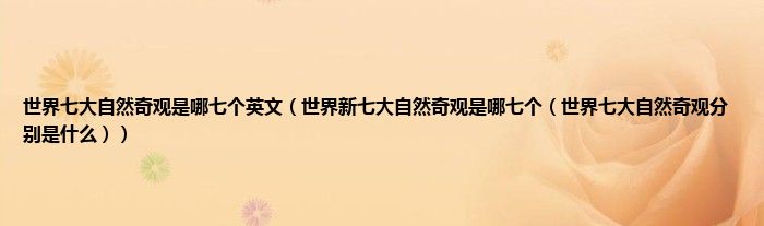 大家好,综合小编来为大家讲解下世界七大自然奇观是哪七个英文,世界新七大自然奇观是哪七个,世界七大自然奇观分别是什么这个很多人还不知道,现在让我们一起来看看吧!