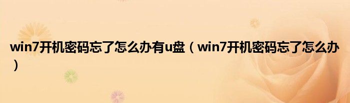 以上就是【win7开机密码忘了怎么办有u盘,win7开机密码忘了怎么办】相关内容。