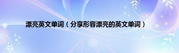 1、 漂亮英文单词分享帅;漂亮;好看;漂亮;邦妮;公平;有魅力;迷人;好听;令人愉快的做得好;好看;好看;漂亮的脸蛋;特征这些词汇都可以表示漂亮