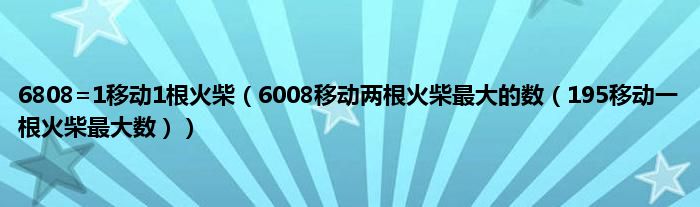 大家好,综合小编来为大家讲解下6808=1移动1根火柴,6008移动两根火柴最大的数,195移动一根火柴最大数这个很多人还不知道,现在让我们一起来看看吧!