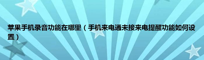 苹果手机录音功能在哪里(手机来电通未接来电提醒功能如何设置)