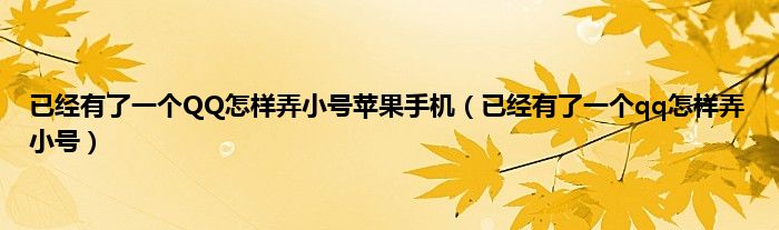 已经有了一个QQ怎样弄小号苹果手机(已经有了一个qq怎样弄小号)