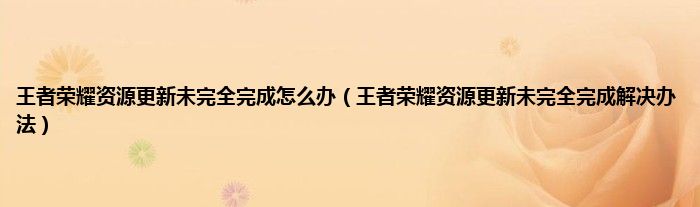 大家好,综合小编来为大家讲解下王者荣耀资源更新未完全完成怎么办,王者荣耀资源更新未完全完成解决办法这个很多人还不知道,现在让我们一起来看看吧!