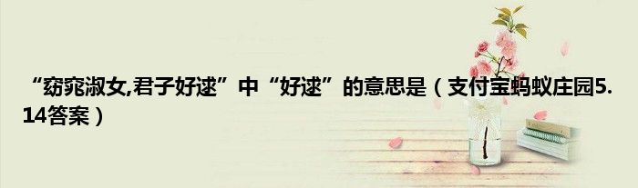 “窈窕淑女,君子好逑”中的“好”是什么意思?支付宝蚂蚁庄园5.14回答