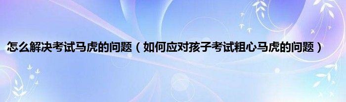 欢迎观看本篇文章,小升来为大家解答以上问题。怎么解决考试马虎的问题,如何应对孩子考试粗心马虎的问题很多人还不知道,现在让我们一起来看看吧!